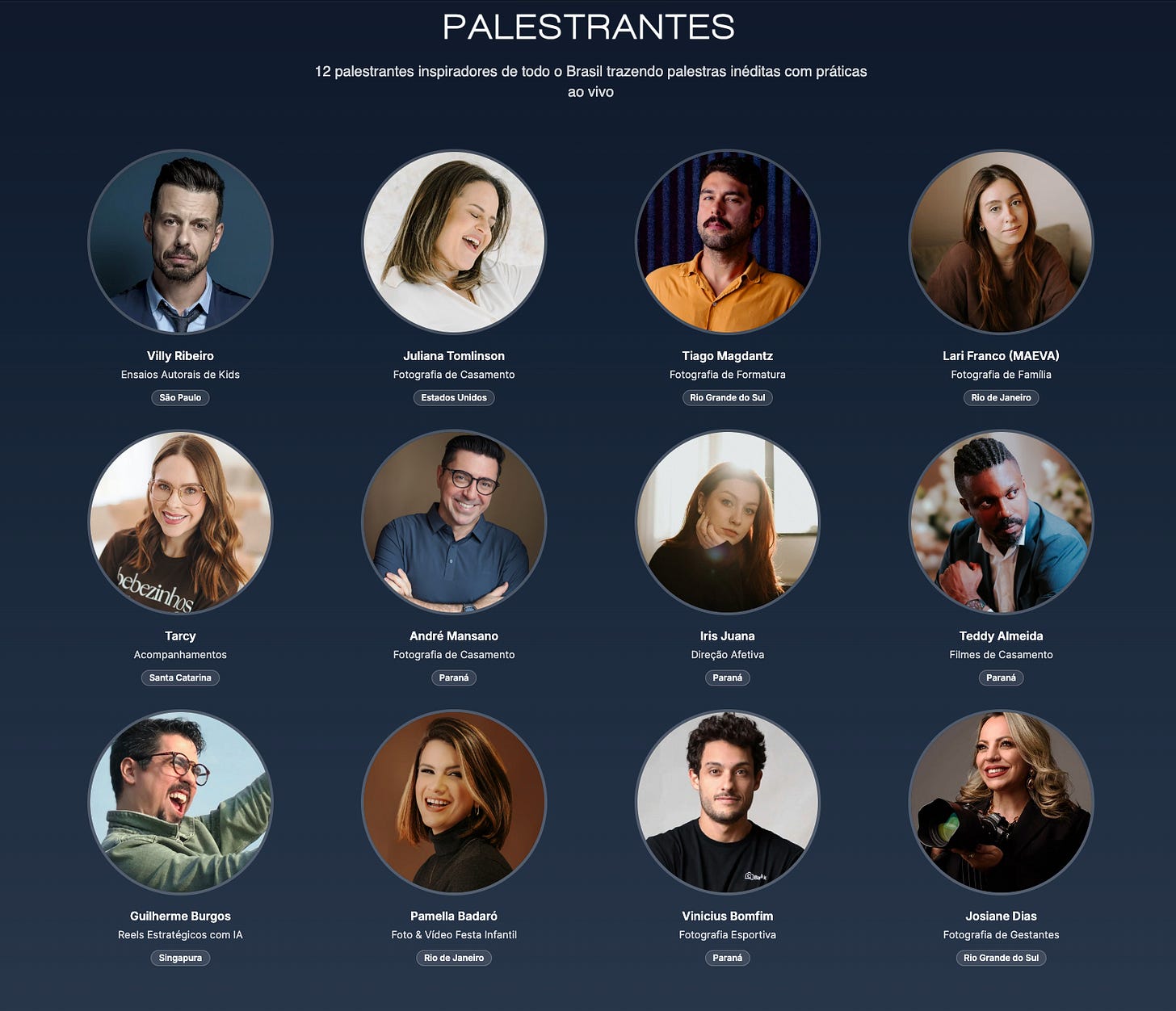 Não estou colecionando logos de eventos. Estou construindo algo mais consistente: presença editorial permanente nos maiores congressos de fotografia do Brasil — antes, durante e depois de cada edição, com profundidade que grupos de WhatsApp não conseguem oferecer.