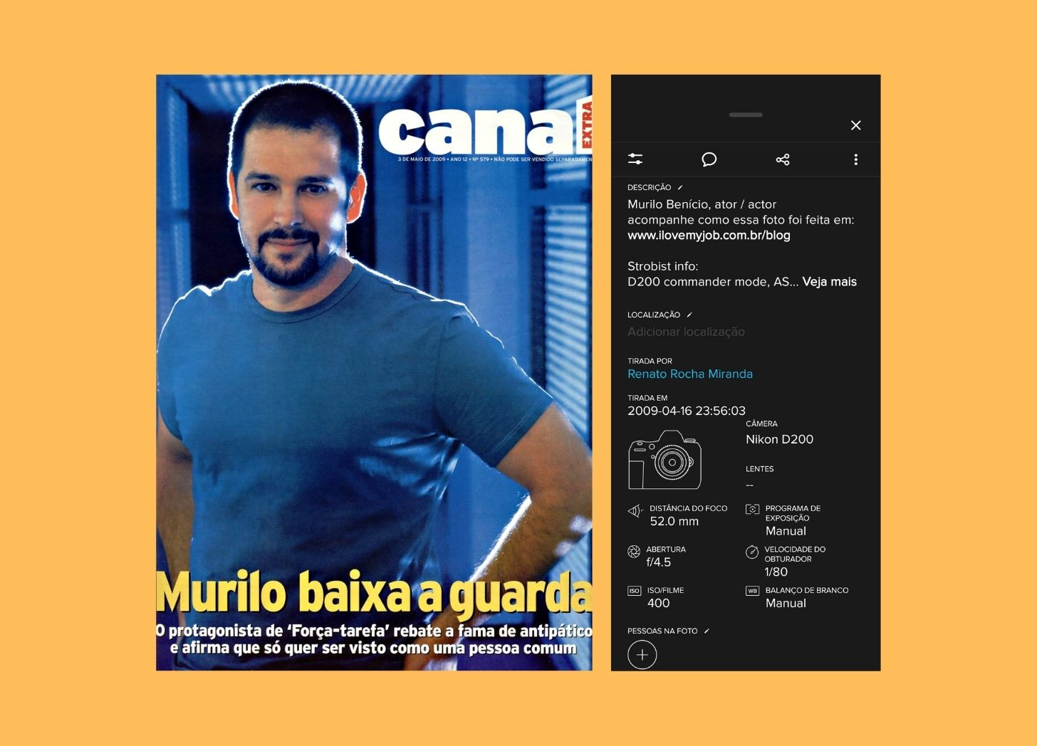 Murilo foi fotografado à meia-noite com 2 flashes: um atrás dele e outro na esquerda, abertura em f/4,5, velocidade 1/80s, camera cropada, jpeg médio e ISO 400!!!