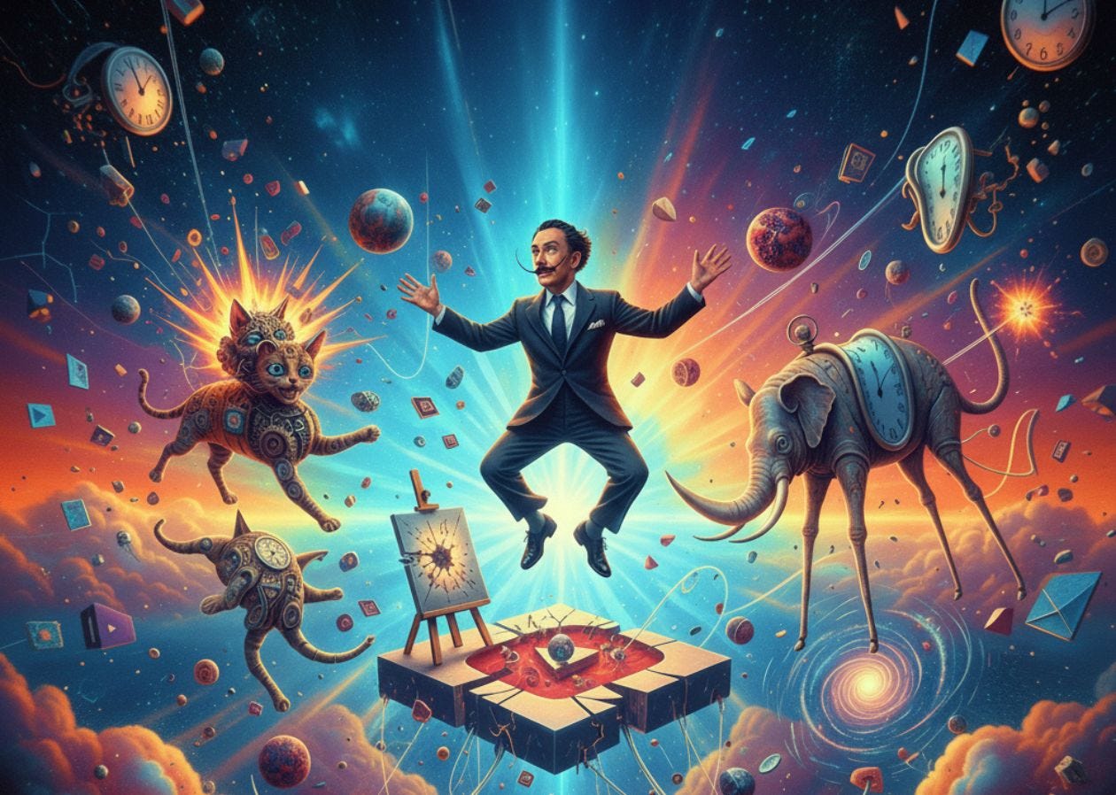 O processo de cada tentativa era épico: reposicionar Dalí (que ficava cada vez mais molhado), acalmar os gatos traumatizados, limpar o chão, resetar a iluminação, recompor a cena, e torcer para que na próxima tudo se alinhasse perfeitamente no momento do clique.
