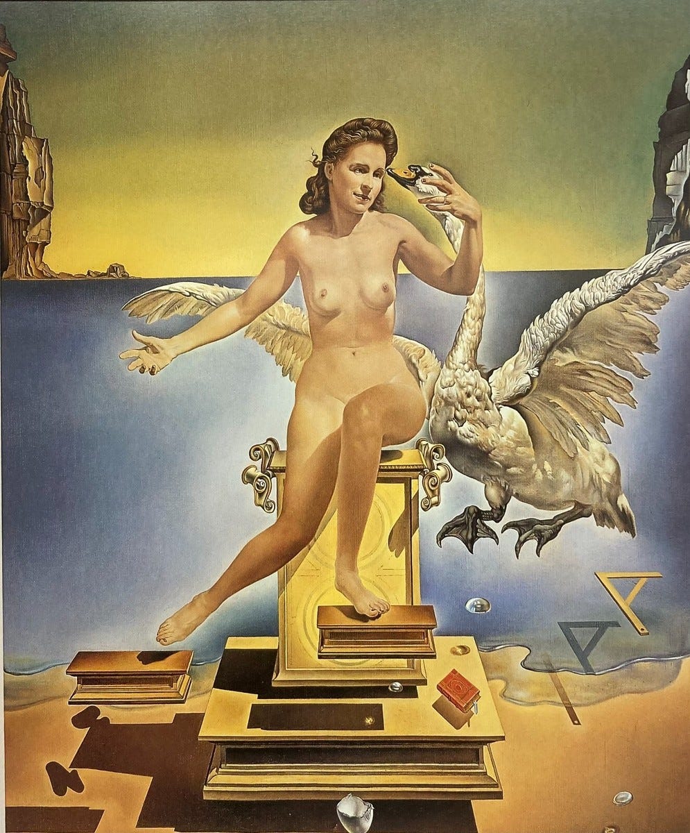 Quando as fotografias estavam sendo tiradas, o cavalete atrás de Dalí continha apenas uma moldura vazia. Depois que a imagem final foi escolhida, Dalí pintou, diretamente na impressão, para produzir a imagem mostrada.