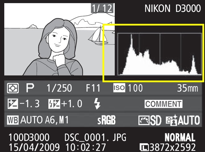 Além disso, o histograma da câmera é baseado na visualização JPEG, mesmo quando você fotografa em RAW. Isso significa que as configurações de estilo de imagem da câmera (contraste, saturação, etc.) afetam o histograma exibido, mas não necessariamente os dados RAW que você tem disponível para edição.