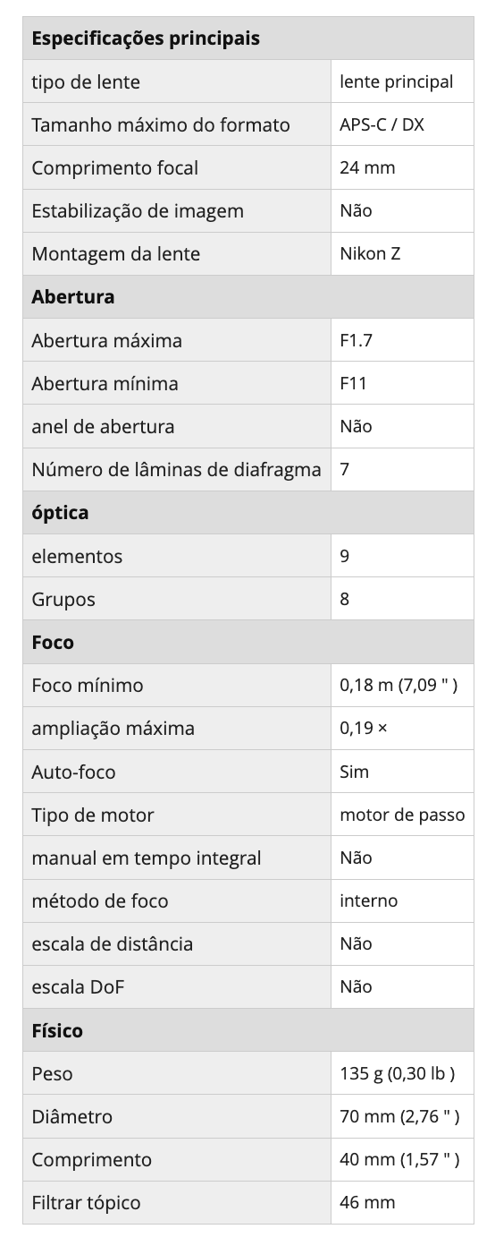 Lente Nikon NIKKOR Z DX 24mm f/1.7 (Nikon Z)