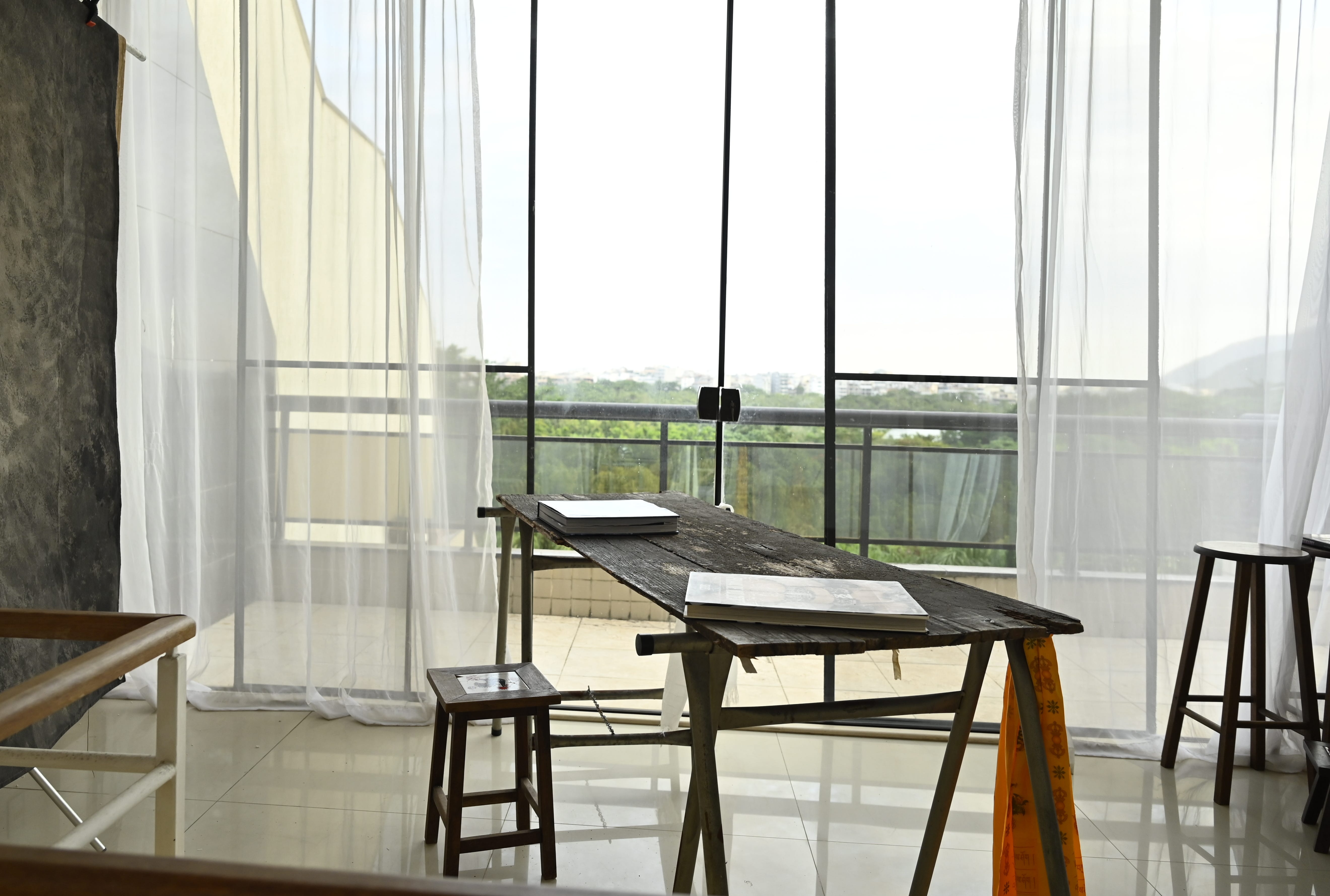 A Fotografia me ensinou que um problema carrega consigo sua solução: um janelão generoso permite que uma fonte de luz equivalente a cinquenta trilhões, duzentos e oitenta quatrilhões de flashes portáteis inunde o estúdio, é tanta energia que Tiveram que colocá-lo a 150 milhões de quilômetros de mim: o Sol.