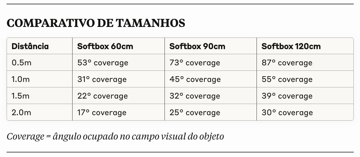 Vamos direto ao ponto: 65cm é pequeno para um softbox. E não é uma questão de opinião - é física pura.