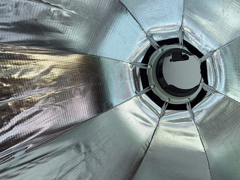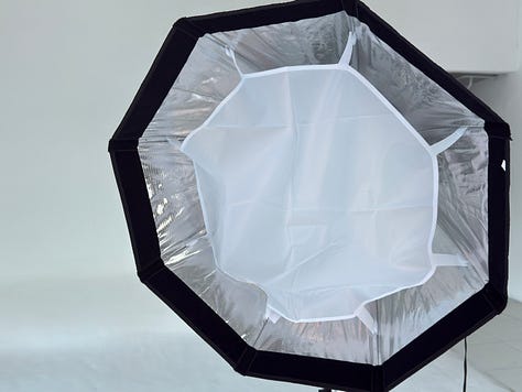 A qualidade da luz está diretamente relacionada ao tamanho e proximidade da fonte luminosa, mas há uma armadilha no conceito: a área iluminada pelo octabox é reduzida conforme a distância diminui, aumentando o contraste da imagem.